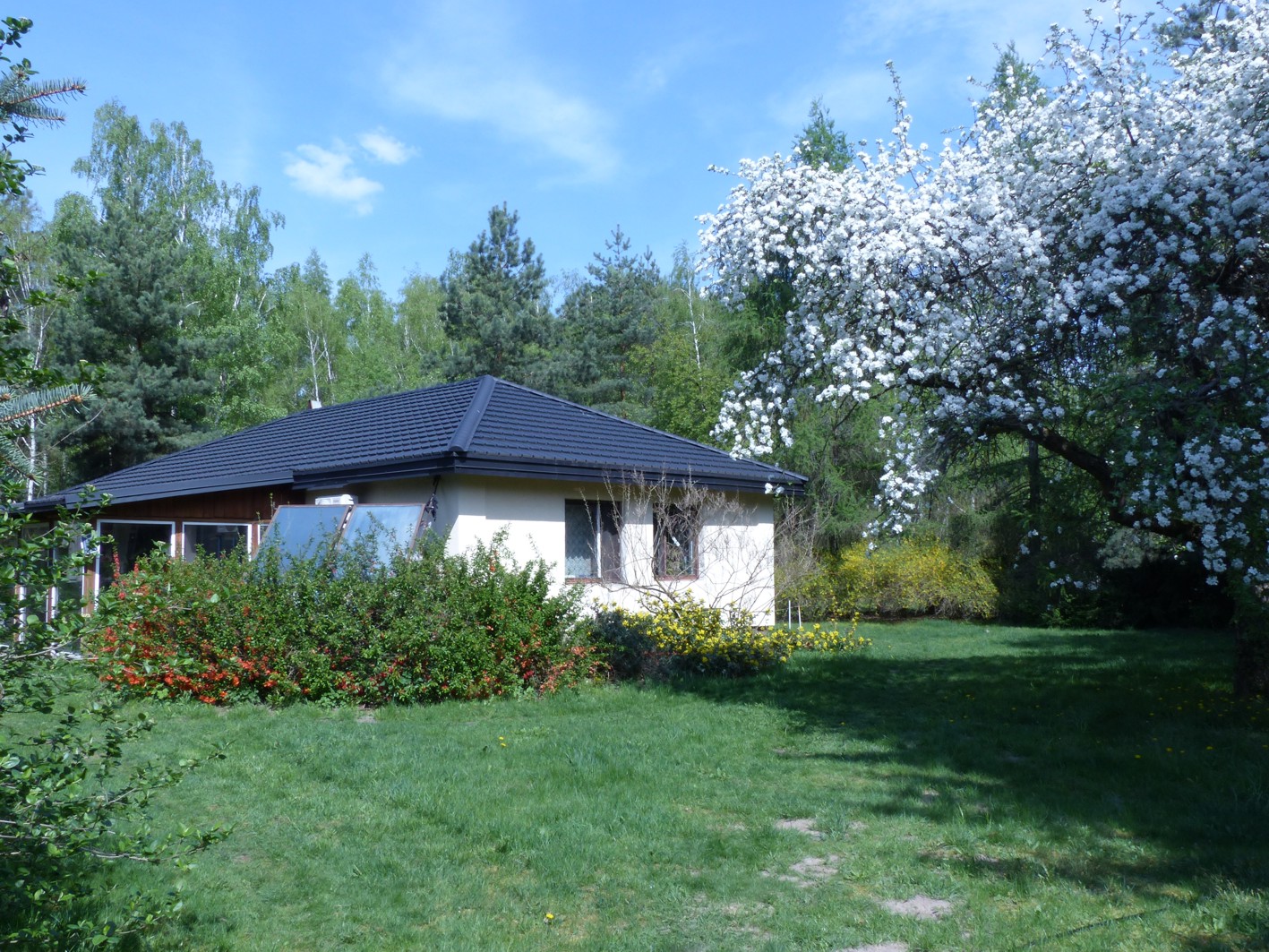 Cała posesja obsadzona licznymi drzewami i